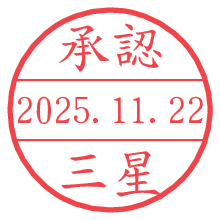 オプションの「電子透かし」をチェックし[生成]すると、見た目には分からないように、UNIXタイムスタンプを識別情報としてPNG形式の日付印に埋め込みます。 日付スタンプメーカーの使い方「部署」「名前」は最大8文字まで入力が可能です。「スタンプの色」を選択し、[生成]ボタン押下で印影画像が更新され、背景を透明に設定したPNG形式とPDF形式の印影画像がリンクからダウンロードできます。 オプションの「電子透かし」は、その性格上日付印ととても相性の良い付加サービスです。 別ページの「タイムスタンプと電子透かし」でも詳しく解説しますが、このオプションを追加することで、日付印が生成された日時に確かにその印が存在していることが証明されます。 ![]() 三星さんの電子印鑑が作れます。社内でのデータ書類閲覧確認用など、認印的な使い方のできる電子印鑑が作れます。 ![]() 古代文字で落款印が作れます。「落款スタンプメーカー」で作品を引き立たせる落款印が作れます。
