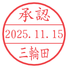 オプションの「電子透かし」をチェックし[生成]すると、見た目には分からないように、UNIXタイムスタンプを識別情報としてPNG形式の日付印に埋め込みます。 日付スタンプメーカーの使い方「部署」「名前」は最大8文字まで入力が可能です。「スタンプの色」を選択し、[生成]ボタン押下で印影画像が更新され、背景を透明に設定したPNG形式とPDF形式の印影画像がリンクからダウンロードできます。 オプションの「電子透かし」は、その性格上日付印ととても相性の良い付加サービスです。 別ページの「タイムスタンプと電子透かし」でも詳しく解説しますが、このオプションを追加することで、日付印が生成された日時に確かにその印が存在していることが証明されます。 ![]() 三輪田さんの電子印鑑が作れます。社内でのデータ書類閲覧確認用など、認印的な使い方のできる電子印鑑が作れます。 ![]() 古代文字で落款印が作れます。「落款スタンプメーカー」で作品を引き立たせる落款印が作れます。
