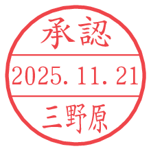 オプションの「電子透かし」をチェックし[生成]すると、見た目には分からないように、UNIXタイムスタンプを識別情報としてPNG形式の日付印に埋め込みます。 日付スタンプメーカーの使い方「部署」「名前」は最大8文字まで入力が可能です。「スタンプの色」を選択し、[生成]ボタン押下で印影画像が更新され、背景を透明に設定したPNG形式とPDF形式の印影画像がリンクからダウンロードできます。 オプションの「電子透かし」は、その性格上日付印ととても相性の良い付加サービスです。 別ページの「タイムスタンプと電子透かし」でも詳しく解説しますが、このオプションを追加することで、日付印が生成された日時に確かにその印が存在していることが証明されます。 ![]() 三野原さんの電子印鑑が作れます。社内でのデータ書類閲覧確認用など、認印的な使い方のできる電子印鑑が作れます。 ![]() 古代文字で落款印が作れます。「落款スタンプメーカー」で作品を引き立たせる落款印が作れます。