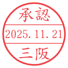 オプションの「電子透かし」をチェックし[生成]すると、見た目には分からないように、UNIXタイムスタンプを識別情報としてPNG形式の日付印に埋め込みます。 日付スタンプメーカーの使い方「部署」「名前」は最大8文字まで入力が可能です。「スタンプの色」を選択し、[生成]ボタン押下で印影画像が更新され、背景を透明に設定したPNG形式とPDF形式の印影画像がリンクからダウンロードできます。 オプションの「電子透かし」は、その性格上日付印ととても相性の良い付加サービスです。 別ページの「タイムスタンプと電子透かし」でも詳しく解説しますが、このオプションを追加することで、日付印が生成された日時に確かにその印が存在していることが証明されます。 ![]() 三阪さんの電子印鑑が作れます。社内でのデータ書類閲覧確認用など、認印的な使い方のできる電子印鑑が作れます。 ![]() 古代文字で落款印が作れます。「落款スタンプメーカー」で作品を引き立たせる落款印が作れます。