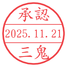 オプションの「電子透かし」をチェックし[生成]すると、見た目には分からないように、UNIXタイムスタンプを識別情報としてPNG形式の日付印に埋め込みます。 日付スタンプメーカーの使い方「部署」「名前」は最大8文字まで入力が可能です。「スタンプの色」を選択し、[生成]ボタン押下で印影画像が更新され、背景を透明に設定したPNG形式とPDF形式の印影画像がリンクからダウンロードできます。 オプションの「電子透かし」は、その性格上日付印ととても相性の良い付加サービスです。 別ページの「タイムスタンプと電子透かし」でも詳しく解説しますが、このオプションを追加することで、日付印が生成された日時に確かにその印が存在していることが証明されます。 ![]() 三鬼さんの電子印鑑が作れます。社内でのデータ書類閲覧確認用など、認印的な使い方のできる電子印鑑が作れます。 ![]() 古代文字で落款印が作れます。「落款スタンプメーカー」で作品を引き立たせる落款印が作れます。