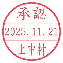 オプションの「電子透かし」をチェックし[生成]すると、見た目には分からないように、UNIXタイムスタンプを識別情報としてPNG形式の日付印に埋め込みます。 日付スタンプメーカーの使い方「部署」「名前」は最大8文字まで入力が可能です。「スタンプの色」を選択し、[生成]ボタン押下で印影画像が更新され、背景を透明に設定したPNG形式とPDF形式の印影画像がリンクからダウンロードできます。 オプションの「電子透かし」は、その性格上日付印ととても相性の良い付加サービスです。 別ページの「タイムスタンプと電子透かし」でも詳しく解説しますが、このオプションを追加することで、日付印が生成された日時に確かにその印が存在していることが証明されます。 ![]() 上中村さんの電子印鑑が作れます。社内でのデータ書類閲覧確認用など、認印的な使い方のできる電子印鑑が作れます。 ![]() 古代文字で落款印が作れます。「落款スタンプメーカー」で作品を引き立たせる落款印が作れます。