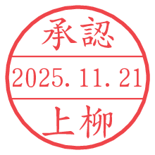 オプションの「電子透かし」をチェックし[生成]すると、見た目には分からないように、UNIXタイムスタンプを識別情報としてPNG形式の日付印に埋め込みます。 日付スタンプメーカーの使い方「部署」「名前」は最大8文字まで入力が可能です。「スタンプの色」を選択し、[生成]ボタン押下で印影画像が更新され、背景を透明に設定したPNG形式とPDF形式の印影画像がリンクからダウンロードできます。 オプションの「電子透かし」は、その性格上日付印ととても相性の良い付加サービスです。 別ページの「タイムスタンプと電子透かし」でも詳しく解説しますが、このオプションを追加することで、日付印が生成された日時に確かにその印が存在していることが証明されます。 ![]() 上柳さんの電子印鑑が作れます。社内でのデータ書類閲覧確認用など、認印的な使い方のできる電子印鑑が作れます。 ![]() 古代文字で落款印が作れます。「落款スタンプメーカー」で作品を引き立たせる落款印が作れます。