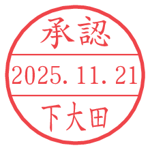 オプションの「電子透かし」をチェックし[生成]すると、見た目には分からないように、UNIXタイムスタンプを識別情報としてPNG形式の日付印に埋め込みます。 日付スタンプメーカーの使い方「部署」「名前」は最大8文字まで入力が可能です。「スタンプの色」を選択し、[生成]ボタン押下で印影画像が更新され、背景を透明に設定したPNG形式とPDF形式の印影画像がリンクからダウンロードできます。 オプションの「電子透かし」は、その性格上日付印ととても相性の良い付加サービスです。 別ページの「タイムスタンプと電子透かし」でも詳しく解説しますが、このオプションを追加することで、日付印が生成された日時に確かにその印が存在していることが証明されます。 ![]() 下大田さんの電子印鑑が作れます。社内でのデータ書類閲覧確認用など、認印的な使い方のできる電子印鑑が作れます。 ![]() 古代文字で落款印が作れます。「落款スタンプメーカー」で作品を引き立たせる落款印が作れます。