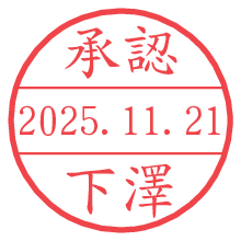 オプションの「電子透かし」をチェックし[生成]すると、見た目には分からないように、UNIXタイムスタンプを識別情報としてPNG形式の日付印に埋め込みます。 日付スタンプメーカーの使い方「部署」「名前」は最大8文字まで入力が可能です。「スタンプの色」を選択し、[生成]ボタン押下で印影画像が更新され、背景を透明に設定したPNG形式とPDF形式の印影画像がリンクからダウンロードできます。 オプションの「電子透かし」は、その性格上日付印ととても相性の良い付加サービスです。 別ページの「タイムスタンプと電子透かし」でも詳しく解説しますが、このオプションを追加することで、日付印が生成された日時に確かにその印が存在していることが証明されます。 ![]() 下澤さんの電子印鑑が作れます。社内でのデータ書類閲覧確認用など、認印的な使い方のできる電子印鑑が作れます。 ![]() 古代文字で落款印が作れます。「落款スタンプメーカー」で作品を引き立たせる落款印が作れます。