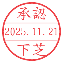 オプションの「電子透かし」をチェックし[生成]すると、見た目には分からないように、UNIXタイムスタンプを識別情報としてPNG形式の日付印に埋め込みます。 日付スタンプメーカーの使い方「部署」「名前」は最大8文字まで入力が可能です。「スタンプの色」を選択し、[生成]ボタン押下で印影画像が更新され、背景を透明に設定したPNG形式とPDF形式の印影画像がリンクからダウンロードできます。 オプションの「電子透かし」は、その性格上日付印ととても相性の良い付加サービスです。 別ページの「タイムスタンプと電子透かし」でも詳しく解説しますが、このオプションを追加することで、日付印が生成された日時に確かにその印が存在していることが証明されます。 ![]() 下芝さんの電子印鑑が作れます。社内でのデータ書類閲覧確認用など、認印的な使い方のできる電子印鑑が作れます。 ![]() 古代文字で落款印が作れます。「落款スタンプメーカー」で作品を引き立たせる落款印が作れます。