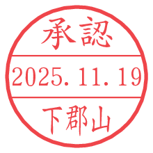 オプションの「電子透かし」をチェックし[生成]すると、見た目には分からないように、UNIXタイムスタンプを識別情報としてPNG形式の日付印に埋め込みます。 日付スタンプメーカーの使い方「部署」「名前」は最大8文字まで入力が可能です。「スタンプの色」を選択し、[生成]ボタン押下で印影画像が更新され、背景を透明に設定したPNG形式とPDF形式の印影画像がリンクからダウンロードできます。 オプションの「電子透かし」は、その性格上日付印ととても相性の良い付加サービスです。 別ページの「タイムスタンプと電子透かし」でも詳しく解説しますが、このオプションを追加することで、日付印が生成された日時に確かにその印が存在していることが証明されます。 ![]() 下郡山さんの電子印鑑が作れます。社内でのデータ書類閲覧確認用など、認印的な使い方のできる電子印鑑が作れます。 ![]() 古代文字で落款印が作れます。「落款スタンプメーカー」で作品を引き立たせる落款印が作れます。