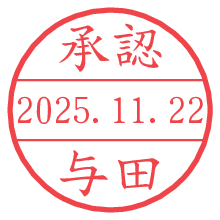 オプションの「電子透かし」をチェックし[生成]すると、見た目には分からないように、UNIXタイムスタンプを識別情報としてPNG形式の日付印に埋め込みます。 日付スタンプメーカーの使い方「部署」「名前」は最大8文字まで入力が可能です。「スタンプの色」を選択し、[生成]ボタン押下で印影画像が更新され、背景を透明に設定したPNG形式とPDF形式の印影画像がリンクからダウンロードできます。 オプションの「電子透かし」は、その性格上日付印ととても相性の良い付加サービスです。 別ページの「タイムスタンプと電子透かし」でも詳しく解説しますが、このオプションを追加することで、日付印が生成された日時に確かにその印が存在していることが証明されます。 ![]() 与田さんの電子印鑑が作れます。社内でのデータ書類閲覧確認用など、認印的な使い方のできる電子印鑑が作れます。 ![]() 古代文字で落款印が作れます。「落款スタンプメーカー」で作品を引き立たせる落款印が作れます。