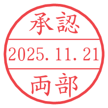 オプションの「電子透かし」をチェックし[生成]すると、見た目には分からないように、UNIXタイムスタンプを識別情報としてPNG形式の日付印に埋め込みます。 日付スタンプメーカーの使い方「部署」「名前」は最大8文字まで入力が可能です。「スタンプの色」を選択し、[生成]ボタン押下で印影画像が更新され、背景を透明に設定したPNG形式とPDF形式の印影画像がリンクからダウンロードできます。 オプションの「電子透かし」は、その性格上日付印ととても相性の良い付加サービスです。 別ページの「タイムスタンプと電子透かし」でも詳しく解説しますが、このオプションを追加することで、日付印が生成された日時に確かにその印が存在していることが証明されます。 ![]() 両部さんの電子印鑑が作れます。社内でのデータ書類閲覧確認用など、認印的な使い方のできる電子印鑑が作れます。 ![]() 古代文字で落款印が作れます。「落款スタンプメーカー」で作品を引き立たせる落款印が作れます。