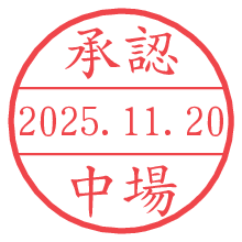 オプションの「電子透かし」をチェックし[生成]すると、見た目には分からないように、UNIXタイムスタンプを識別情報としてPNG形式の日付印に埋め込みます。 日付スタンプメーカーの使い方「部署」「名前」は最大8文字まで入力が可能です。「スタンプの色」を選択し、[生成]ボタン押下で印影画像が更新され、背景を透明に設定したPNG形式とPDF形式の印影画像がリンクからダウンロードできます。 オプションの「電子透かし」は、その性格上日付印ととても相性の良い付加サービスです。 別ページの「タイムスタンプと電子透かし」でも詳しく解説しますが、このオプションを追加することで、日付印が生成された日時に確かにその印が存在していることが証明されます。 ![]() 中場さんの電子印鑑が作れます。社内でのデータ書類閲覧確認用など、認印的な使い方のできる電子印鑑が作れます。 ![]() 古代文字で落款印が作れます。「落款スタンプメーカー」で作品を引き立たせる落款印が作れます。