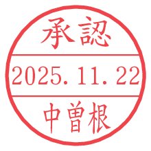 オプションの「電子透かし」をチェックし[生成]すると、見た目には分からないように、UNIXタイムスタンプを識別情報としてPNG形式の日付印に埋め込みます。 日付スタンプメーカーの使い方「部署」「名前」は最大8文字まで入力が可能です。「スタンプの色」を選択し、[生成]ボタン押下で印影画像が更新され、背景を透明に設定したPNG形式とPDF形式の印影画像がリンクからダウンロードできます。 オプションの「電子透かし」は、その性格上日付印ととても相性の良い付加サービスです。 別ページの「タイムスタンプと電子透かし」でも詳しく解説しますが、このオプションを追加することで、日付印が生成された日時に確かにその印が存在していることが証明されます。 ![]() 中曽根さんの電子印鑑が作れます。社内でのデータ書類閲覧確認用など、認印的な使い方のできる電子印鑑が作れます。 ![]() 古代文字で落款印が作れます。「落款スタンプメーカー」で作品を引き立たせる落款印が作れます。