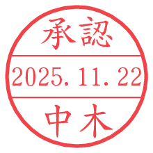 オプションの「電子透かし」をチェックし[生成]すると、見た目には分からないように、UNIXタイムスタンプを識別情報としてPNG形式の日付印に埋め込みます。 日付スタンプメーカーの使い方「部署」「名前」は最大8文字まで入力が可能です。「スタンプの色」を選択し、[生成]ボタン押下で印影画像が更新され、背景を透明に設定したPNG形式とPDF形式の印影画像がリンクからダウンロードできます。 オプションの「電子透かし」は、その性格上日付印ととても相性の良い付加サービスです。 別ページの「タイムスタンプと電子透かし」でも詳しく解説しますが、このオプションを追加することで、日付印が生成された日時に確かにその印が存在していることが証明されます。 ![]() 中木さんの電子印鑑が作れます。社内でのデータ書類閲覧確認用など、認印的な使い方のできる電子印鑑が作れます。 ![]() 古代文字で落款印が作れます。「落款スタンプメーカー」で作品を引き立たせる落款印が作れます。