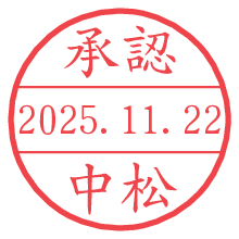 オプションの「電子透かし」をチェックし[生成]すると、見た目には分からないように、UNIXタイムスタンプを識別情報としてPNG形式の日付印に埋め込みます。 日付スタンプメーカーの使い方「部署」「名前」は最大8文字まで入力が可能です。「スタンプの色」を選択し、[生成]ボタン押下で印影画像が更新され、背景を透明に設定したPNG形式とPDF形式の印影画像がリンクからダウンロードできます。 オプションの「電子透かし」は、その性格上日付印ととても相性の良い付加サービスです。 別ページの「タイムスタンプと電子透かし」でも詳しく解説しますが、このオプションを追加することで、日付印が生成された日時に確かにその印が存在していることが証明されます。 ![]() 中松さんの電子印鑑が作れます。社内でのデータ書類閲覧確認用など、認印的な使い方のできる電子印鑑が作れます。 ![]() 古代文字で落款印が作れます。「落款スタンプメーカー」で作品を引き立たせる落款印が作れます。