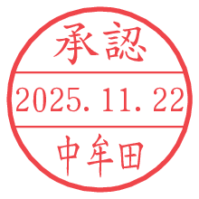 オプションの「電子透かし」をチェックし[生成]すると、見た目には分からないように、UNIXタイムスタンプを識別情報としてPNG形式の日付印に埋め込みます。 日付スタンプメーカーの使い方「部署」「名前」は最大8文字まで入力が可能です。「スタンプの色」を選択し、[生成]ボタン押下で印影画像が更新され、背景を透明に設定したPNG形式とPDF形式の印影画像がリンクからダウンロードできます。 オプションの「電子透かし」は、その性格上日付印ととても相性の良い付加サービスです。 別ページの「タイムスタンプと電子透かし」でも詳しく解説しますが、このオプションを追加することで、日付印が生成された日時に確かにその印が存在していることが証明されます。 ![]() 中牟田さんの電子印鑑が作れます。社内でのデータ書類閲覧確認用など、認印的な使い方のできる電子印鑑が作れます。 ![]() 古代文字で落款印が作れます。「落款スタンプメーカー」で作品を引き立たせる落款印が作れます。