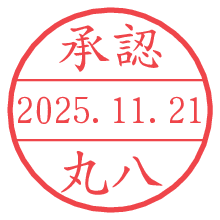 オプションの「電子透かし」をチェックし[生成]すると、見た目には分からないように、UNIXタイムスタンプを識別情報としてPNG形式の日付印に埋め込みます。 日付スタンプメーカーの使い方「部署」「名前」は最大8文字まで入力が可能です。「スタンプの色」を選択し、[生成]ボタン押下で印影画像が更新され、背景を透明に設定したPNG形式とPDF形式の印影画像がリンクからダウンロードできます。 オプションの「電子透かし」は、その性格上日付印ととても相性の良い付加サービスです。 別ページの「タイムスタンプと電子透かし」でも詳しく解説しますが、このオプションを追加することで、日付印が生成された日時に確かにその印が存在していることが証明されます。 ![]() 丸八さんの電子印鑑が作れます。社内でのデータ書類閲覧確認用など、認印的な使い方のできる電子印鑑が作れます。 ![]() 古代文字で落款印が作れます。「落款スタンプメーカー」で作品を引き立たせる落款印が作れます。