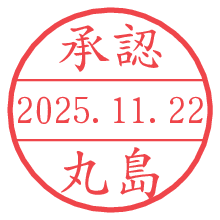 オプションの「電子透かし」をチェックし[生成]すると、見た目には分からないように、UNIXタイムスタンプを識別情報としてPNG形式の日付印に埋め込みます。 日付スタンプメーカーの使い方「部署」「名前」は最大8文字まで入力が可能です。「スタンプの色」を選択し、[生成]ボタン押下で印影画像が更新され、背景を透明に設定したPNG形式とPDF形式の印影画像がリンクからダウンロードできます。 オプションの「電子透かし」は、その性格上日付印ととても相性の良い付加サービスです。 別ページの「タイムスタンプと電子透かし」でも詳しく解説しますが、このオプションを追加することで、日付印が生成された日時に確かにその印が存在していることが証明されます。 ![]() 丸島さんの電子印鑑が作れます。社内でのデータ書類閲覧確認用など、認印的な使い方のできる電子印鑑が作れます。 ![]() 古代文字で落款印が作れます。「落款スタンプメーカー」で作品を引き立たせる落款印が作れます。