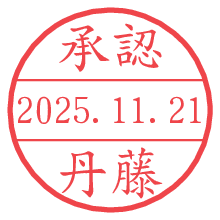 オプションの「電子透かし」をチェックし[生成]すると、見た目には分からないように、UNIXタイムスタンプを識別情報としてPNG形式の日付印に埋め込みます。 日付スタンプメーカーの使い方「部署」「名前」は最大8文字まで入力が可能です。「スタンプの色」を選択し、[生成]ボタン押下で印影画像が更新され、背景を透明に設定したPNG形式とPDF形式の印影画像がリンクからダウンロードできます。 オプションの「電子透かし」は、その性格上日付印ととても相性の良い付加サービスです。 別ページの「タイムスタンプと電子透かし」でも詳しく解説しますが、このオプションを追加することで、日付印が生成された日時に確かにその印が存在していることが証明されます。 ![]() 丹藤さんの電子印鑑が作れます。社内でのデータ書類閲覧確認用など、認印的な使い方のできる電子印鑑が作れます。 ![]() 古代文字で落款印が作れます。「落款スタンプメーカー」で作品を引き立たせる落款印が作れます。