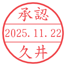 オプションの「電子透かし」をチェックし[生成]すると、見た目には分からないように、UNIXタイムスタンプを識別情報としてPNG形式の日付印に埋め込みます。 日付スタンプメーカーの使い方「部署」「名前」は最大8文字まで入力が可能です。「スタンプの色」を選択し、[生成]ボタン押下で印影画像が更新され、背景を透明に設定したPNG形式とPDF形式の印影画像がリンクからダウンロードできます。 オプションの「電子透かし」は、その性格上日付印ととても相性の良い付加サービスです。 別ページの「タイムスタンプと電子透かし」でも詳しく解説しますが、このオプションを追加することで、日付印が生成された日時に確かにその印が存在していることが証明されます。 ![]() 久井さんの電子印鑑が作れます。社内でのデータ書類閲覧確認用など、認印的な使い方のできる電子印鑑が作れます。 ![]() 古代文字で落款印が作れます。「落款スタンプメーカー」で作品を引き立たせる落款印が作れます。