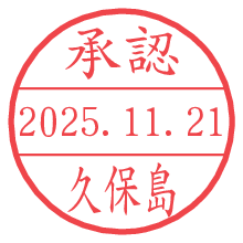 オプションの「電子透かし」をチェックし[生成]すると、見た目には分からないように、UNIXタイムスタンプを識別情報としてPNG形式の日付印に埋め込みます。 日付スタンプメーカーの使い方「部署」「名前」は最大8文字まで入力が可能です。「スタンプの色」を選択し、[生成]ボタン押下で印影画像が更新され、背景を透明に設定したPNG形式とPDF形式の印影画像がリンクからダウンロードできます。 オプションの「電子透かし」は、その性格上日付印ととても相性の良い付加サービスです。 別ページの「タイムスタンプと電子透かし」でも詳しく解説しますが、このオプションを追加することで、日付印が生成された日時に確かにその印が存在していることが証明されます。 ![]() 久保島さんの電子印鑑が作れます。社内でのデータ書類閲覧確認用など、認印的な使い方のできる電子印鑑が作れます。 ![]() 古代文字で落款印が作れます。「落款スタンプメーカー」で作品を引き立たせる落款印が作れます。