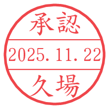 オプションの「電子透かし」をチェックし[生成]すると、見た目には分からないように、UNIXタイムスタンプを識別情報としてPNG形式の日付印に埋め込みます。 日付スタンプメーカーの使い方「部署」「名前」は最大8文字まで入力が可能です。「スタンプの色」を選択し、[生成]ボタン押下で印影画像が更新され、背景を透明に設定したPNG形式とPDF形式の印影画像がリンクからダウンロードできます。 オプションの「電子透かし」は、その性格上日付印ととても相性の良い付加サービスです。 別ページの「タイムスタンプと電子透かし」でも詳しく解説しますが、このオプションを追加することで、日付印が生成された日時に確かにその印が存在していることが証明されます。 ![]() 久場さんの電子印鑑が作れます。社内でのデータ書類閲覧確認用など、認印的な使い方のできる電子印鑑が作れます。 ![]() 古代文字で落款印が作れます。「落款スタンプメーカー」で作品を引き立たせる落款印が作れます。
