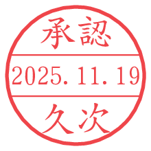 オプションの「電子透かし」をチェックし[生成]すると、見た目には分からないように、UNIXタイムスタンプを識別情報としてPNG形式の日付印に埋め込みます。 日付スタンプメーカーの使い方「部署」「名前」は最大8文字まで入力が可能です。「スタンプの色」を選択し、[生成]ボタン押下で印影画像が更新され、背景を透明に設定したPNG形式とPDF形式の印影画像がリンクからダウンロードできます。 オプションの「電子透かし」は、その性格上日付印ととても相性の良い付加サービスです。 別ページの「タイムスタンプと電子透かし」でも詳しく解説しますが、このオプションを追加することで、日付印が生成された日時に確かにその印が存在していることが証明されます。 ![]() 久次さんの電子印鑑が作れます。社内でのデータ書類閲覧確認用など、認印的な使い方のできる電子印鑑が作れます。 ![]() 古代文字で落款印が作れます。「落款スタンプメーカー」で作品を引き立たせる落款印が作れます。