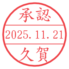 オプションの「電子透かし」をチェックし[生成]すると、見た目には分からないように、UNIXタイムスタンプを識別情報としてPNG形式の日付印に埋め込みます。 日付スタンプメーカーの使い方「部署」「名前」は最大8文字まで入力が可能です。「スタンプの色」を選択し、[生成]ボタン押下で印影画像が更新され、背景を透明に設定したPNG形式とPDF形式の印影画像がリンクからダウンロードできます。 オプションの「電子透かし」は、その性格上日付印ととても相性の良い付加サービスです。 別ページの「タイムスタンプと電子透かし」でも詳しく解説しますが、このオプションを追加することで、日付印が生成された日時に確かにその印が存在していることが証明されます。 ![]() 久賀さんの電子印鑑が作れます。社内でのデータ書類閲覧確認用など、認印的な使い方のできる電子印鑑が作れます。 ![]() 古代文字で落款印が作れます。「落款スタンプメーカー」で作品を引き立たせる落款印が作れます。
