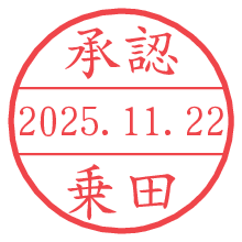 オプションの「電子透かし」をチェックし[生成]すると、見た目には分からないように、UNIXタイムスタンプを識別情報としてPNG形式の日付印に埋め込みます。 日付スタンプメーカーの使い方「部署」「名前」は最大8文字まで入力が可能です。「スタンプの色」を選択し、[生成]ボタン押下で印影画像が更新され、背景を透明に設定したPNG形式とPDF形式の印影画像がリンクからダウンロードできます。 オプションの「電子透かし」は、その性格上日付印ととても相性の良い付加サービスです。 別ページの「タイムスタンプと電子透かし」でも詳しく解説しますが、このオプションを追加することで、日付印が生成された日時に確かにその印が存在していることが証明されます。 ![]() 乗田さんの電子印鑑が作れます。社内でのデータ書類閲覧確認用など、認印的な使い方のできる電子印鑑が作れます。 ![]() 古代文字で落款印が作れます。「落款スタンプメーカー」で作品を引き立たせる落款印が作れます。