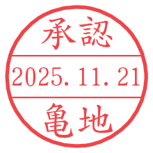 オプションの「電子透かし」をチェックし[生成]すると、見た目には分からないように、UNIXタイムスタンプを識別情報としてPNG形式の日付印に埋め込みます。 日付スタンプメーカーの使い方「部署」「名前」は最大8文字まで入力が可能です。「スタンプの色」を選択し、[生成]ボタン押下で印影画像が更新され、背景を透明に設定したPNG形式とPDF形式の印影画像がリンクからダウンロードできます。 オプションの「電子透かし」は、その性格上日付印ととても相性の良い付加サービスです。 別ページの「タイムスタンプと電子透かし」でも詳しく解説しますが、このオプションを追加することで、日付印が生成された日時に確かにその印が存在していることが証明されます。 ![]() 亀地さんの電子印鑑が作れます。社内でのデータ書類閲覧確認用など、認印的な使い方のできる電子印鑑が作れます。 ![]() 古代文字で落款印が作れます。「落款スタンプメーカー」で作品を引き立たせる落款印が作れます。