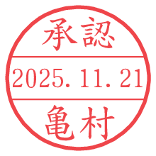 オプションの「電子透かし」をチェックし[生成]すると、見た目には分からないように、UNIXタイムスタンプを識別情報としてPNG形式の日付印に埋め込みます。 日付スタンプメーカーの使い方「部署」「名前」は最大8文字まで入力が可能です。「スタンプの色」を選択し、[生成]ボタン押下で印影画像が更新され、背景を透明に設定したPNG形式とPDF形式の印影画像がリンクからダウンロードできます。 オプションの「電子透かし」は、その性格上日付印ととても相性の良い付加サービスです。 別ページの「タイムスタンプと電子透かし」でも詳しく解説しますが、このオプションを追加することで、日付印が生成された日時に確かにその印が存在していることが証明されます。 ![]() 亀村さんの電子印鑑が作れます。社内でのデータ書類閲覧確認用など、認印的な使い方のできる電子印鑑が作れます。 ![]() 古代文字で落款印が作れます。「落款スタンプメーカー」で作品を引き立たせる落款印が作れます。