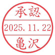 オプションの「電子透かし」をチェックし[生成]すると、見た目には分からないように、UNIXタイムスタンプを識別情報としてPNG形式の日付印に埋め込みます。 日付スタンプメーカーの使い方「部署」「名前」は最大8文字まで入力が可能です。「スタンプの色」を選択し、[生成]ボタン押下で印影画像が更新され、背景を透明に設定したPNG形式とPDF形式の印影画像がリンクからダウンロードできます。 オプションの「電子透かし」は、その性格上日付印ととても相性の良い付加サービスです。 別ページの「タイムスタンプと電子透かし」でも詳しく解説しますが、このオプションを追加することで、日付印が生成された日時に確かにその印が存在していることが証明されます。 ![]() 亀沢さんの電子印鑑が作れます。社内でのデータ書類閲覧確認用など、認印的な使い方のできる電子印鑑が作れます。 ![]() 古代文字で落款印が作れます。「落款スタンプメーカー」で作品を引き立たせる落款印が作れます。