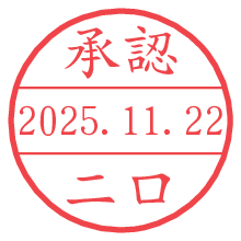 オプションの「電子透かし」をチェックし[生成]すると、見た目には分からないように、UNIXタイムスタンプを識別情報としてPNG形式の日付印に埋め込みます。 日付スタンプメーカーの使い方「部署」「名前」は最大8文字まで入力が可能です。「スタンプの色」を選択し、[生成]ボタン押下で印影画像が更新され、背景を透明に設定したPNG形式とPDF形式の印影画像がリンクからダウンロードできます。 オプションの「電子透かし」は、その性格上日付印ととても相性の良い付加サービスです。 別ページの「タイムスタンプと電子透かし」でも詳しく解説しますが、このオプションを追加することで、日付印が生成された日時に確かにその印が存在していることが証明されます。 ![]() 二口さんの電子印鑑が作れます。社内でのデータ書類閲覧確認用など、認印的な使い方のできる電子印鑑が作れます。 ![]() 古代文字で落款印が作れます。「落款スタンプメーカー」で作品を引き立たせる落款印が作れます。