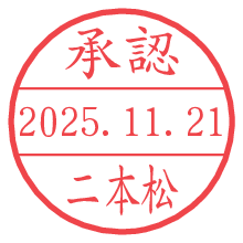 オプションの「電子透かし」をチェックし[生成]すると、見た目には分からないように、UNIXタイムスタンプを識別情報としてPNG形式の日付印に埋め込みます。 日付スタンプメーカーの使い方「部署」「名前」は最大8文字まで入力が可能です。「スタンプの色」を選択し、[生成]ボタン押下で印影画像が更新され、背景を透明に設定したPNG形式とPDF形式の印影画像がリンクからダウンロードできます。 オプションの「電子透かし」は、その性格上日付印ととても相性の良い付加サービスです。 別ページの「タイムスタンプと電子透かし」でも詳しく解説しますが、このオプションを追加することで、日付印が生成された日時に確かにその印が存在していることが証明されます。 ![]() 二本松さんの電子印鑑が作れます。社内でのデータ書類閲覧確認用など、認印的な使い方のできる電子印鑑が作れます。 ![]() 古代文字で落款印が作れます。「落款スタンプメーカー」で作品を引き立たせる落款印が作れます。