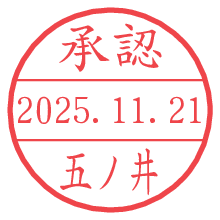 オプションの「電子透かし」をチェックし[生成]すると、見た目には分からないように、UNIXタイムスタンプを識別情報としてPNG形式の日付印に埋め込みます。 日付スタンプメーカーの使い方「部署」「名前」は最大8文字まで入力が可能です。「スタンプの色」を選択し、[生成]ボタン押下で印影画像が更新され、背景を透明に設定したPNG形式とPDF形式の印影画像がリンクからダウンロードできます。 オプションの「電子透かし」は、その性格上日付印ととても相性の良い付加サービスです。 別ページの「タイムスタンプと電子透かし」でも詳しく解説しますが、このオプションを追加することで、日付印が生成された日時に確かにその印が存在していることが証明されます。 ![]() 五ノ井さんの電子印鑑が作れます。社内でのデータ書類閲覧確認用など、認印的な使い方のできる電子印鑑が作れます。 ![]() 古代文字で落款印が作れます。「落款スタンプメーカー」で作品を引き立たせる落款印が作れます。