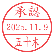 オプションの「電子透かし」をチェックし[生成]すると、見た目には分からないように、UNIXタイムスタンプを識別情報としてPNG形式の日付印に埋め込みます。 日付スタンプメーカーの使い方「部署」「名前」は最大8文字まで入力が可能です。「スタンプの色」を選択し、[生成]ボタン押下で印影画像が更新され、背景を透明に設定したPNG形式とPDF形式の印影画像がリンクからダウンロードできます。 オプションの「電子透かし」は、その性格上日付印ととても相性の良い付加サービスです。 別ページの「タイムスタンプと電子透かし」でも詳しく解説しますが、このオプションを追加することで、日付印が生成された日時に確かにその印が存在していることが証明されます。 ![]() 五十木さんの電子印鑑が作れます。社内でのデータ書類閲覧確認用など、認印的な使い方のできる電子印鑑が作れます。 ![]() 古代文字で落款印が作れます。「落款スタンプメーカー」で作品を引き立たせる落款印が作れます。