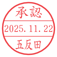 オプションの「電子透かし」をチェックし[生成]すると、見た目には分からないように、UNIXタイムスタンプを識別情報としてPNG形式の日付印に埋め込みます。 日付スタンプメーカーの使い方「部署」「名前」は最大8文字まで入力が可能です。「スタンプの色」を選択し、[生成]ボタン押下で印影画像が更新され、背景を透明に設定したPNG形式とPDF形式の印影画像がリンクからダウンロードできます。 オプションの「電子透かし」は、その性格上日付印ととても相性の良い付加サービスです。 別ページの「タイムスタンプと電子透かし」でも詳しく解説しますが、このオプションを追加することで、日付印が生成された日時に確かにその印が存在していることが証明されます。 ![]() 五反田さんの電子印鑑が作れます。社内でのデータ書類閲覧確認用など、認印的な使い方のできる電子印鑑が作れます。 ![]() 古代文字で落款印が作れます。「落款スタンプメーカー」で作品を引き立たせる落款印が作れます。