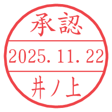 オプションの「電子透かし」をチェックし[生成]すると、見た目には分からないように、UNIXタイムスタンプを識別情報としてPNG形式の日付印に埋め込みます。 日付スタンプメーカーの使い方「部署」「名前」は最大8文字まで入力が可能です。「スタンプの色」を選択し、[生成]ボタン押下で印影画像が更新され、背景を透明に設定したPNG形式とPDF形式の印影画像がリンクからダウンロードできます。 オプションの「電子透かし」は、その性格上日付印ととても相性の良い付加サービスです。 別ページの「タイムスタンプと電子透かし」でも詳しく解説しますが、このオプションを追加することで、日付印が生成された日時に確かにその印が存在していることが証明されます。 ![]() 井ノ上さんの電子印鑑が作れます。社内でのデータ書類閲覧確認用など、認印的な使い方のできる電子印鑑が作れます。 ![]() 古代文字で落款印が作れます。「落款スタンプメーカー」で作品を引き立たせる落款印が作れます。