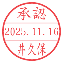 オプションの「電子透かし」をチェックし[生成]すると、見た目には分からないように、UNIXタイムスタンプを識別情報としてPNG形式の日付印に埋め込みます。 日付スタンプメーカーの使い方「部署」「名前」は最大8文字まで入力が可能です。「スタンプの色」を選択し、[生成]ボタン押下で印影画像が更新され、背景を透明に設定したPNG形式とPDF形式の印影画像がリンクからダウンロードできます。 オプションの「電子透かし」は、その性格上日付印ととても相性の良い付加サービスです。 別ページの「タイムスタンプと電子透かし」でも詳しく解説しますが、このオプションを追加することで、日付印が生成された日時に確かにその印が存在していることが証明されます。 ![]() 井久保さんの電子印鑑が作れます。社内でのデータ書類閲覧確認用など、認印的な使い方のできる電子印鑑が作れます。 ![]() 古代文字で落款印が作れます。「落款スタンプメーカー」で作品を引き立たせる落款印が作れます。