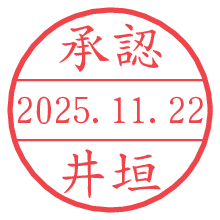 オプションの「電子透かし」をチェックし[生成]すると、見た目には分からないように、UNIXタイムスタンプを識別情報としてPNG形式の日付印に埋め込みます。 日付スタンプメーカーの使い方「部署」「名前」は最大8文字まで入力が可能です。「スタンプの色」を選択し、[生成]ボタン押下で印影画像が更新され、背景を透明に設定したPNG形式とPDF形式の印影画像がリンクからダウンロードできます。 オプションの「電子透かし」は、その性格上日付印ととても相性の良い付加サービスです。 別ページの「タイムスタンプと電子透かし」でも詳しく解説しますが、このオプションを追加することで、日付印が生成された日時に確かにその印が存在していることが証明されます。 ![]() 井垣さんの電子印鑑が作れます。社内でのデータ書類閲覧確認用など、認印的な使い方のできる電子印鑑が作れます。 ![]() 古代文字で落款印が作れます。「落款スタンプメーカー」で作品を引き立たせる落款印が作れます。