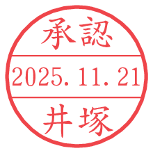 オプションの「電子透かし」をチェックし[生成]すると、見た目には分からないように、UNIXタイムスタンプを識別情報としてPNG形式の日付印に埋め込みます。 日付スタンプメーカーの使い方「部署」「名前」は最大8文字まで入力が可能です。「スタンプの色」を選択し、[生成]ボタン押下で印影画像が更新され、背景を透明に設定したPNG形式とPDF形式の印影画像がリンクからダウンロードできます。 オプションの「電子透かし」は、その性格上日付印ととても相性の良い付加サービスです。 別ページの「タイムスタンプと電子透かし」でも詳しく解説しますが、このオプションを追加することで、日付印が生成された日時に確かにその印が存在していることが証明されます。 ![]() 井塚さんの電子印鑑が作れます。社内でのデータ書類閲覧確認用など、認印的な使い方のできる電子印鑑が作れます。 ![]() 古代文字で落款印が作れます。「落款スタンプメーカー」で作品を引き立たせる落款印が作れます。