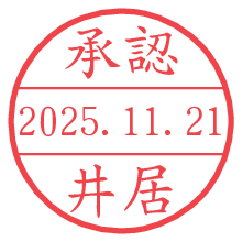 オプションの「電子透かし」をチェックし[生成]すると、見た目には分からないように、UNIXタイムスタンプを識別情報としてPNG形式の日付印に埋め込みます。 日付スタンプメーカーの使い方「部署」「名前」は最大8文字まで入力が可能です。「スタンプの色」を選択し、[生成]ボタン押下で印影画像が更新され、背景を透明に設定したPNG形式とPDF形式の印影画像がリンクからダウンロードできます。 オプションの「電子透かし」は、その性格上日付印ととても相性の良い付加サービスです。 別ページの「タイムスタンプと電子透かし」でも詳しく解説しますが、このオプションを追加することで、日付印が生成された日時に確かにその印が存在していることが証明されます。 ![]() 井居さんの電子印鑑が作れます。社内でのデータ書類閲覧確認用など、認印的な使い方のできる電子印鑑が作れます。 ![]() 古代文字で落款印が作れます。「落款スタンプメーカー」で作品を引き立たせる落款印が作れます。