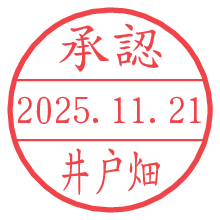 オプションの「電子透かし」をチェックし[生成]すると、見た目には分からないように、UNIXタイムスタンプを識別情報としてPNG形式の日付印に埋め込みます。 日付スタンプメーカーの使い方「部署」「名前」は最大8文字まで入力が可能です。「スタンプの色」を選択し、[生成]ボタン押下で印影画像が更新され、背景を透明に設定したPNG形式とPDF形式の印影画像がリンクからダウンロードできます。 オプションの「電子透かし」は、その性格上日付印ととても相性の良い付加サービスです。 別ページの「タイムスタンプと電子透かし」でも詳しく解説しますが、このオプションを追加することで、日付印が生成された日時に確かにその印が存在していることが証明されます。 ![]() 井戸畑さんの電子印鑑が作れます。社内でのデータ書類閲覧確認用など、認印的な使い方のできる電子印鑑が作れます。 ![]() 古代文字で落款印が作れます。「落款スタンプメーカー」で作品を引き立たせる落款印が作れます。