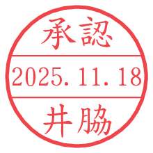 オプションの「電子透かし」をチェックし[生成]すると、見た目には分からないように、UNIXタイムスタンプを識別情報としてPNG形式の日付印に埋め込みます。 日付スタンプメーカーの使い方「部署」「名前」は最大8文字まで入力が可能です。「スタンプの色」を選択し、[生成]ボタン押下で印影画像が更新され、背景を透明に設定したPNG形式とPDF形式の印影画像がリンクからダウンロードできます。 オプションの「電子透かし」は、その性格上日付印ととても相性の良い付加サービスです。 別ページの「タイムスタンプと電子透かし」でも詳しく解説しますが、このオプションを追加することで、日付印が生成された日時に確かにその印が存在していることが証明されます。 ![]() 井脇さんの電子印鑑が作れます。社内でのデータ書類閲覧確認用など、認印的な使い方のできる電子印鑑が作れます。 ![]() 古代文字で落款印が作れます。「落款スタンプメーカー」で作品を引き立たせる落款印が作れます。