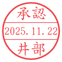 オプションの「電子透かし」をチェックし[生成]すると、見た目には分からないように、UNIXタイムスタンプを識別情報としてPNG形式の日付印に埋め込みます。 日付スタンプメーカーの使い方「部署」「名前」は最大8文字まで入力が可能です。「スタンプの色」を選択し、[生成]ボタン押下で印影画像が更新され、背景を透明に設定したPNG形式とPDF形式の印影画像がリンクからダウンロードできます。 オプションの「電子透かし」は、その性格上日付印ととても相性の良い付加サービスです。 別ページの「タイムスタンプと電子透かし」でも詳しく解説しますが、このオプションを追加することで、日付印が生成された日時に確かにその印が存在していることが証明されます。 ![]() 井部さんの電子印鑑が作れます。社内でのデータ書類閲覧確認用など、認印的な使い方のできる電子印鑑が作れます。 ![]() 古代文字で落款印が作れます。「落款スタンプメーカー」で作品を引き立たせる落款印が作れます。