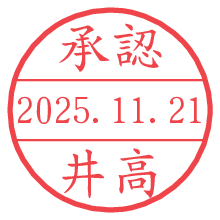 オプションの「電子透かし」をチェックし[生成]すると、見た目には分からないように、UNIXタイムスタンプを識別情報としてPNG形式の日付印に埋め込みます。 日付スタンプメーカーの使い方「部署」「名前」は最大8文字まで入力が可能です。「スタンプの色」を選択し、[生成]ボタン押下で印影画像が更新され、背景を透明に設定したPNG形式とPDF形式の印影画像がリンクからダウンロードできます。 オプションの「電子透かし」は、その性格上日付印ととても相性の良い付加サービスです。 別ページの「タイムスタンプと電子透かし」でも詳しく解説しますが、このオプションを追加することで、日付印が生成された日時に確かにその印が存在していることが証明されます。 ![]() 井高さんの電子印鑑が作れます。社内でのデータ書類閲覧確認用など、認印的な使い方のできる電子印鑑が作れます。 ![]() 古代文字で落款印が作れます。「落款スタンプメーカー」で作品を引き立たせる落款印が作れます。