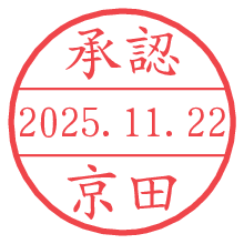 オプションの「電子透かし」をチェックし[生成]すると、見た目には分からないように、UNIXタイムスタンプを識別情報としてPNG形式の日付印に埋め込みます。 日付スタンプメーカーの使い方「部署」「名前」は最大8文字まで入力が可能です。「スタンプの色」を選択し、[生成]ボタン押下で印影画像が更新され、背景を透明に設定したPNG形式とPDF形式の印影画像がリンクからダウンロードできます。 オプションの「電子透かし」は、その性格上日付印ととても相性の良い付加サービスです。 別ページの「タイムスタンプと電子透かし」でも詳しく解説しますが、このオプションを追加することで、日付印が生成された日時に確かにその印が存在していることが証明されます。 ![]() 京田さんの電子印鑑が作れます。社内でのデータ書類閲覧確認用など、認印的な使い方のできる電子印鑑が作れます。 ![]() 古代文字で落款印が作れます。「落款スタンプメーカー」で作品を引き立たせる落款印が作れます。