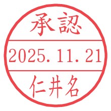 オプションの「電子透かし」をチェックし[生成]すると、見た目には分からないように、UNIXタイムスタンプを識別情報としてPNG形式の日付印に埋め込みます。 日付スタンプメーカーの使い方「部署」「名前」は最大8文字まで入力が可能です。「スタンプの色」を選択し、[生成]ボタン押下で印影画像が更新され、背景を透明に設定したPNG形式とPDF形式の印影画像がリンクからダウンロードできます。 オプションの「電子透かし」は、その性格上日付印ととても相性の良い付加サービスです。 別ページの「タイムスタンプと電子透かし」でも詳しく解説しますが、このオプションを追加することで、日付印が生成された日時に確かにその印が存在していることが証明されます。 ![]() 仁井名さんの電子印鑑が作れます。社内でのデータ書類閲覧確認用など、認印的な使い方のできる電子印鑑が作れます。 ![]() 古代文字で落款印が作れます。「落款スタンプメーカー」で作品を引き立たせる落款印が作れます。