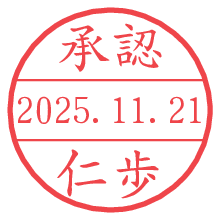オプションの「電子透かし」をチェックし[生成]すると、見た目には分からないように、UNIXタイムスタンプを識別情報としてPNG形式の日付印に埋め込みます。 日付スタンプメーカーの使い方「部署」「名前」は最大8文字まで入力が可能です。「スタンプの色」を選択し、[生成]ボタン押下で印影画像が更新され、背景を透明に設定したPNG形式とPDF形式の印影画像がリンクからダウンロードできます。 オプションの「電子透かし」は、その性格上日付印ととても相性の良い付加サービスです。 別ページの「タイムスタンプと電子透かし」でも詳しく解説しますが、このオプションを追加することで、日付印が生成された日時に確かにその印が存在していることが証明されます。 ![]() 仁歩さんの電子印鑑が作れます。社内でのデータ書類閲覧確認用など、認印的な使い方のできる電子印鑑が作れます。 ![]() 古代文字で落款印が作れます。「落款スタンプメーカー」で作品を引き立たせる落款印が作れます。