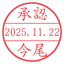オプションの「電子透かし」をチェックし[生成]すると、見た目には分からないように、UNIXタイムスタンプを識別情報としてPNG形式の日付印に埋め込みます。 日付スタンプメーカーの使い方「部署」「名前」は最大8文字まで入力が可能です。「スタンプの色」を選択し、[生成]ボタン押下で印影画像が更新され、背景を透明に設定したPNG形式とPDF形式の印影画像がリンクからダウンロードできます。 オプションの「電子透かし」は、その性格上日付印ととても相性の良い付加サービスです。 別ページの「タイムスタンプと電子透かし」でも詳しく解説しますが、このオプションを追加することで、日付印が生成された日時に確かにその印が存在していることが証明されます。 ![]() 今尾さんの電子印鑑が作れます。社内でのデータ書類閲覧確認用など、認印的な使い方のできる電子印鑑が作れます。 ![]() 古代文字で落款印が作れます。「落款スタンプメーカー」で作品を引き立たせる落款印が作れます。