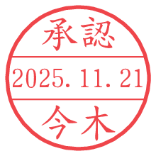 オプションの「電子透かし」をチェックし[生成]すると、見た目には分からないように、UNIXタイムスタンプを識別情報としてPNG形式の日付印に埋め込みます。 日付スタンプメーカーの使い方「部署」「名前」は最大8文字まで入力が可能です。「スタンプの色」を選択し、[生成]ボタン押下で印影画像が更新され、背景を透明に設定したPNG形式とPDF形式の印影画像がリンクからダウンロードできます。 オプションの「電子透かし」は、その性格上日付印ととても相性の良い付加サービスです。 別ページの「タイムスタンプと電子透かし」でも詳しく解説しますが、このオプションを追加することで、日付印が生成された日時に確かにその印が存在していることが証明されます。 ![]() 今木さんの電子印鑑が作れます。社内でのデータ書類閲覧確認用など、認印的な使い方のできる電子印鑑が作れます。 ![]() 古代文字で落款印が作れます。「落款スタンプメーカー」で作品を引き立たせる落款印が作れます。