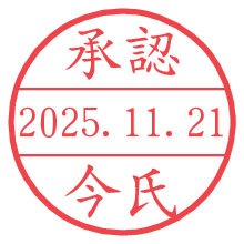 オプションの「電子透かし」をチェックし[生成]すると、見た目には分からないように、UNIXタイムスタンプを識別情報としてPNG形式の日付印に埋め込みます。 日付スタンプメーカーの使い方「部署」「名前」は最大8文字まで入力が可能です。「スタンプの色」を選択し、[生成]ボタン押下で印影画像が更新され、背景を透明に設定したPNG形式とPDF形式の印影画像がリンクからダウンロードできます。 オプションの「電子透かし」は、その性格上日付印ととても相性の良い付加サービスです。 別ページの「タイムスタンプと電子透かし」でも詳しく解説しますが、このオプションを追加することで、日付印が生成された日時に確かにその印が存在していることが証明されます。 ![]() 今氏さんの電子印鑑が作れます。社内でのデータ書類閲覧確認用など、認印的な使い方のできる電子印鑑が作れます。 ![]() 古代文字で落款印が作れます。「落款スタンプメーカー」で作品を引き立たせる落款印が作れます。